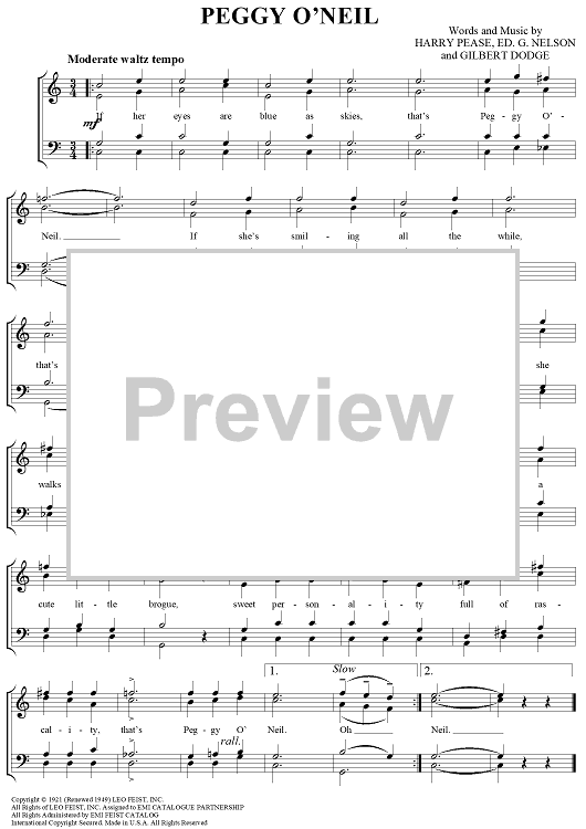Digital Sheet Music for Peggy O'Neil by Harry Pease, Ed G. Nelson, Gilbert Dodge scored for Barbershop Quartet; id:220560