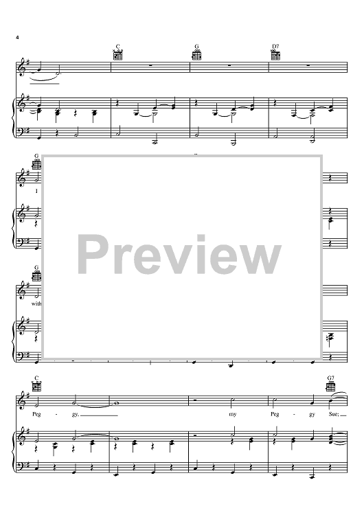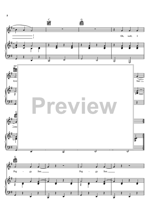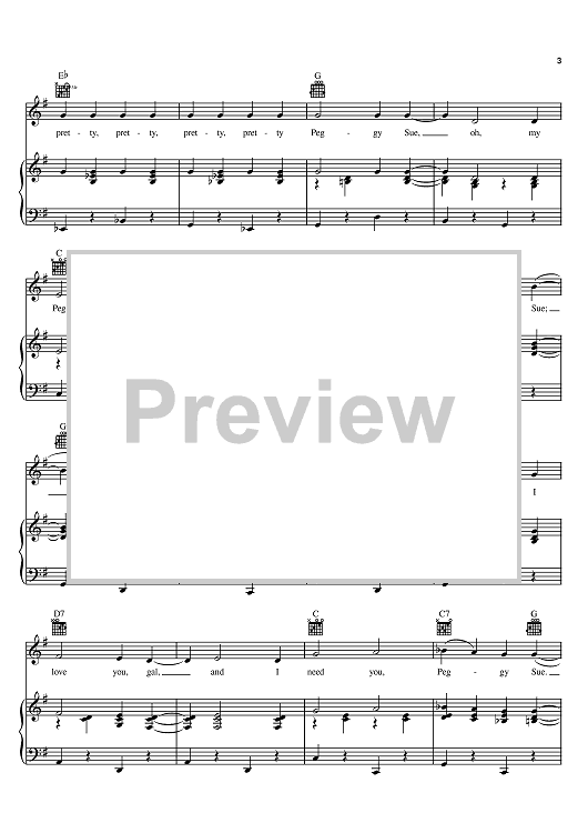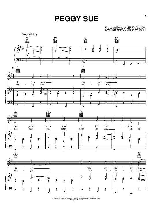 Digital Sheet Music for Peggy Sue by Norman Petty, Buddy Holly, Jerry Allison scored for Piano/Vocal/Chords; id:395157
