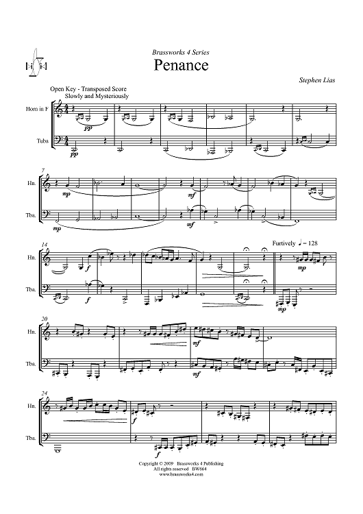 Digital Sheet Music for Penance by Stephen Lias scored for Horn in F and Tuba; id:411330