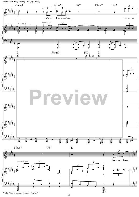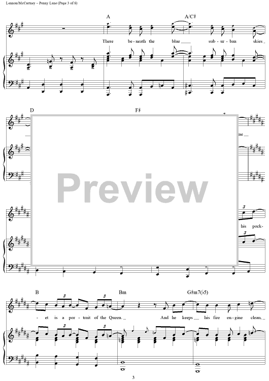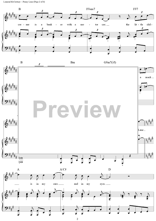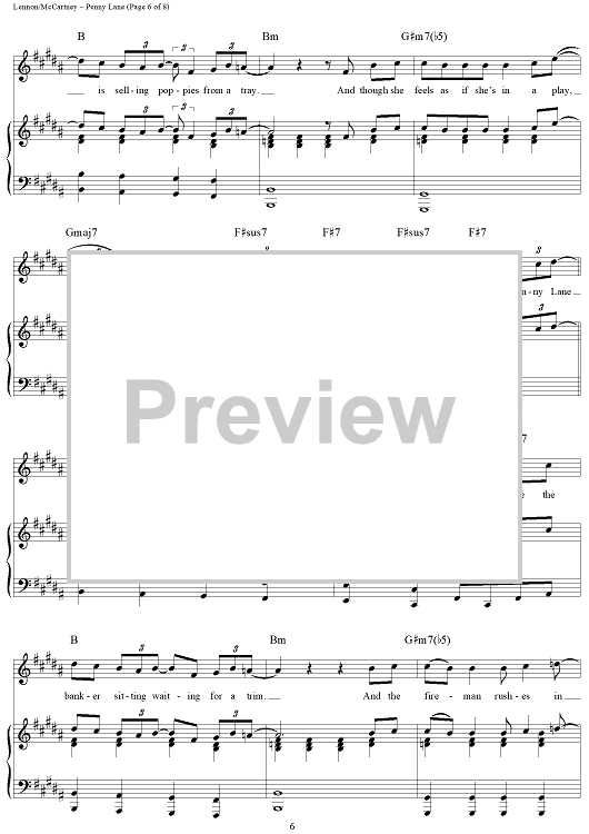 Digital Sheet Music for Penny Lane by Paul McCartney, The Beatles, John Lennon scored for Piano/Vocal/Chords; id:362343