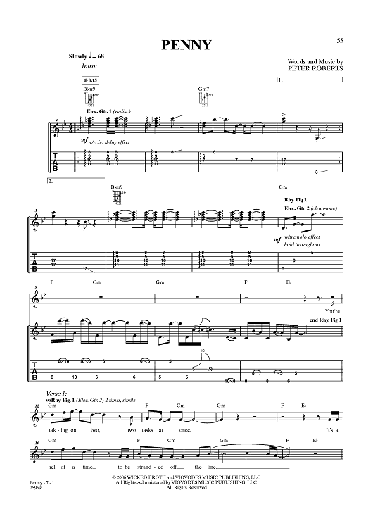 Digital Sheet Music for Penny by Peter Roberts, People In Planes scored for Guitar Tab/Vocal; id:356835