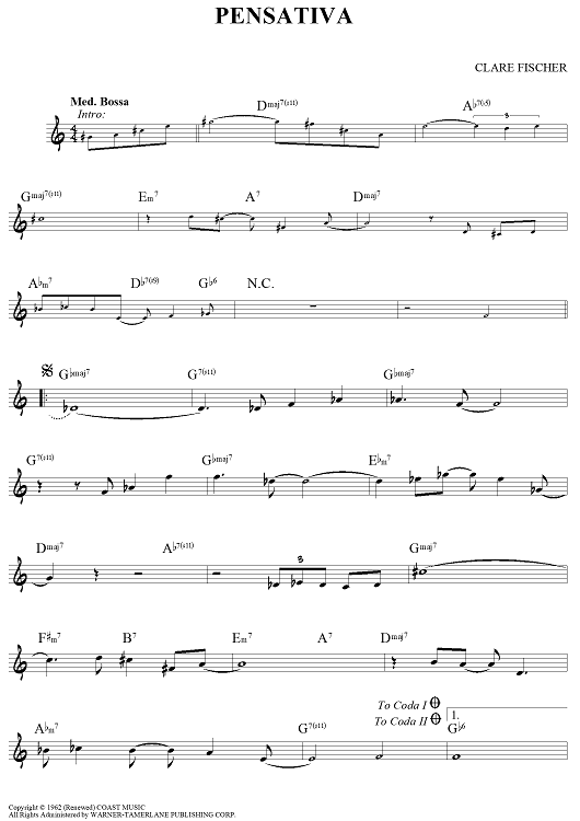 Digital Sheet Music for Pensativa by Clare Fischer scored for Lead Sheet; id:456578