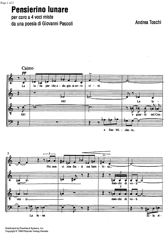 Digital Sheet Music for Pensierino lunare by , Andrea Toschi scored for SATB Choir; id:330177