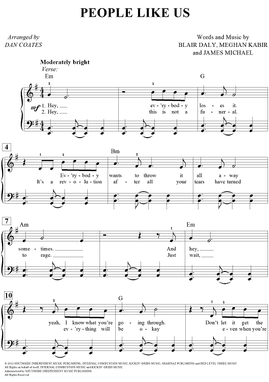Digital Sheet Music for People Like Us by Dan Coates, Blair Daly, Kelly Clarkson, Meghan Kabir, James Michael scored for Easy Piano/Vocal/Chords; id:440091