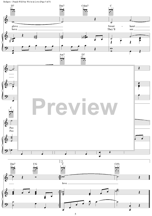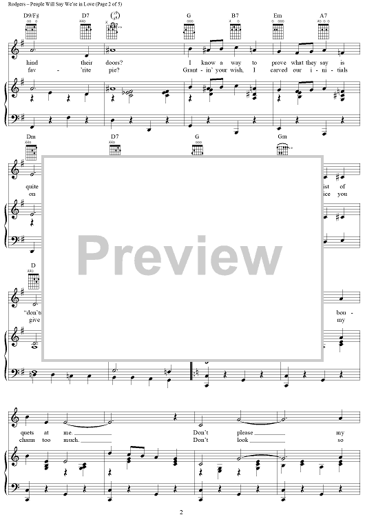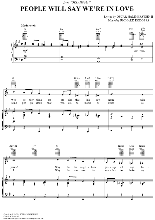 Digital Sheet Music for People Will Say We're in Love by Richard Rodgers, Oscar Hammerstein II scored for Piano/Vocal/Chords; id:367087