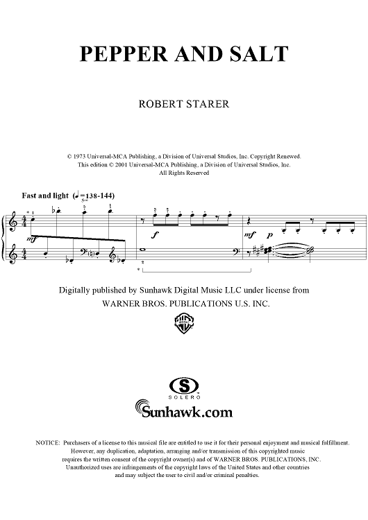 Digital Sheet Music for Pepper and Salt by Robert Starer scored for Piano Solo; id:287511