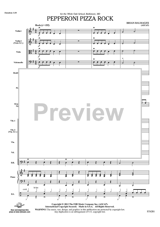Digital Sheet Music for Pepperoni Pizza Rock - Score by Brian Balmages scored for String Orchestra; id:432061