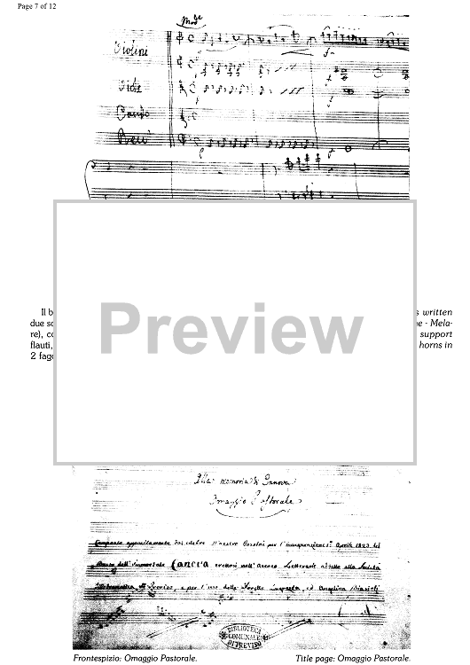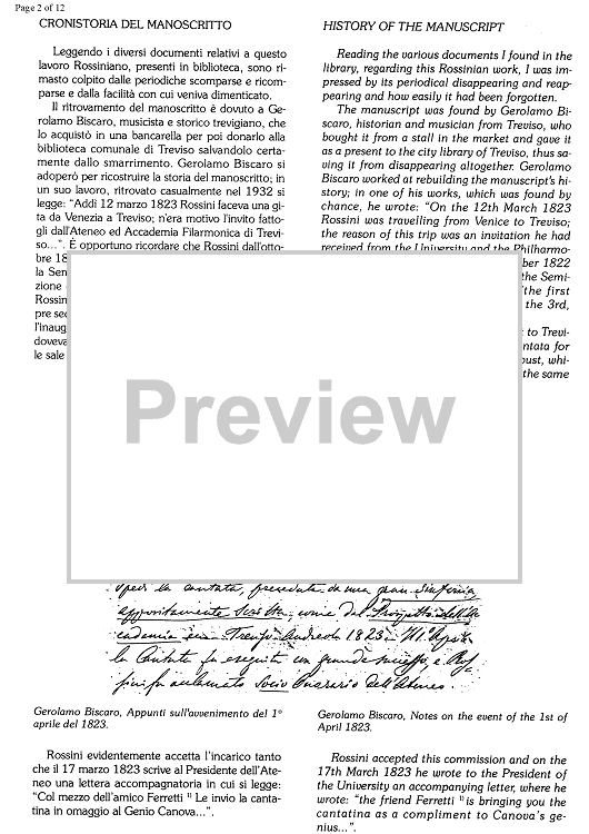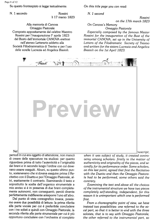 "Per la Commermorazione di Antonia Canova [score] - Preface" Sheet Music by Gioachino Rossini