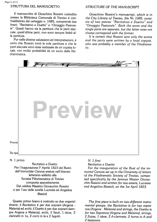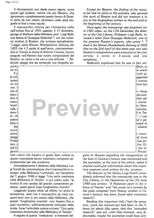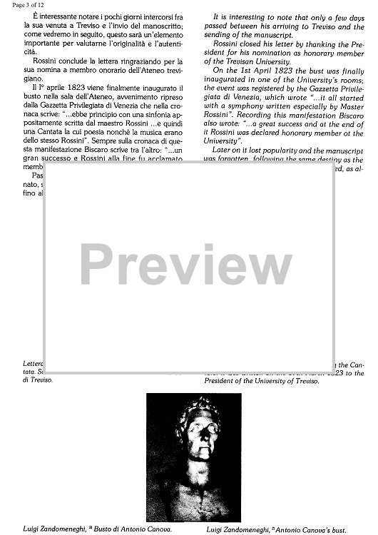 Digital Sheet Music for Per la Commermorazione di Antonia Canova [score] - Preface by , Gioachino Rossini scored for Preface; id:354466