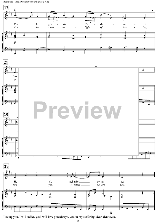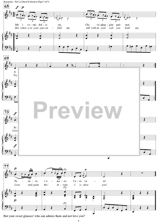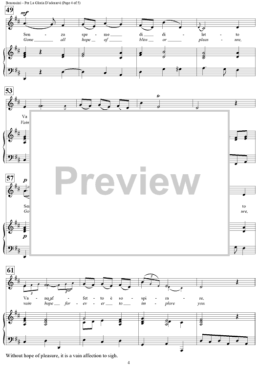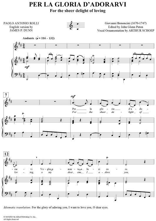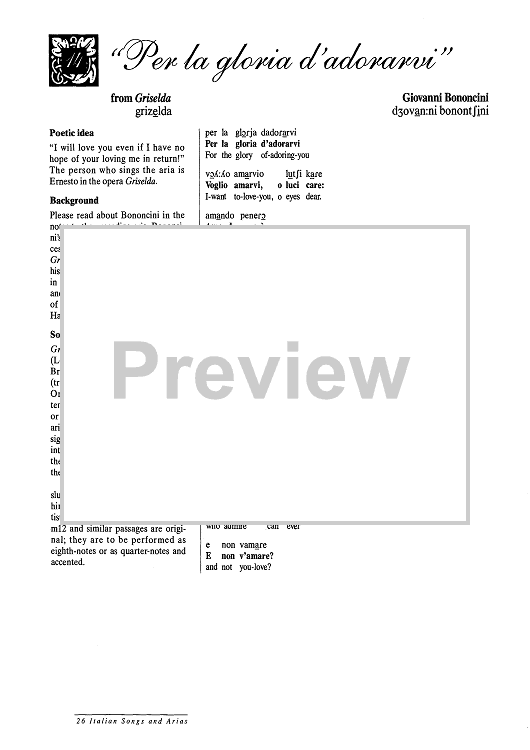 "Per La Gloria D'adorarvi (For the sheer delight of loving)" Sheet Music by Giovanni Battista Bononcini