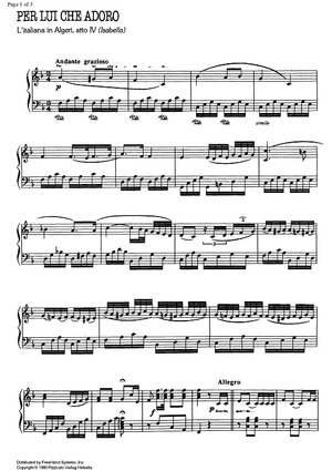 "Per lui che Adoro from L'Italiana in Algeri" Sheet Music by Gioachino Rossini