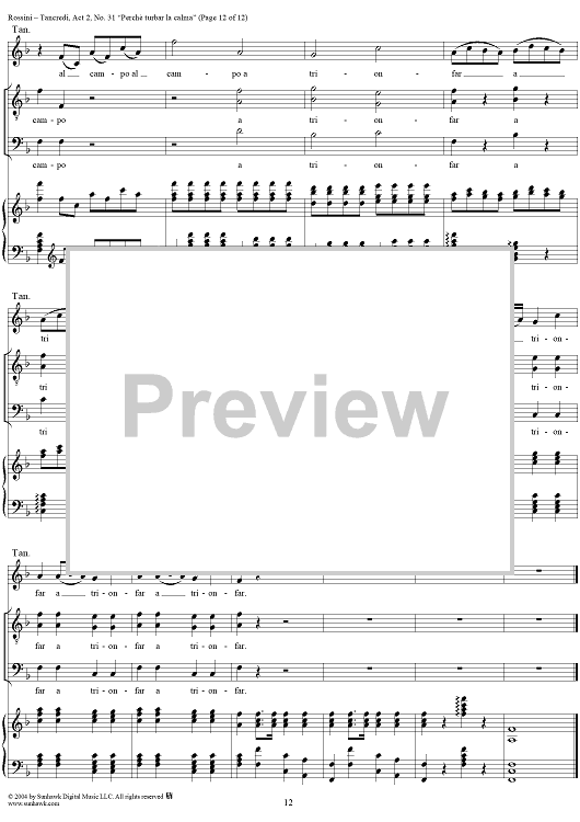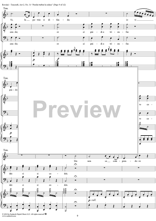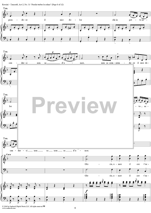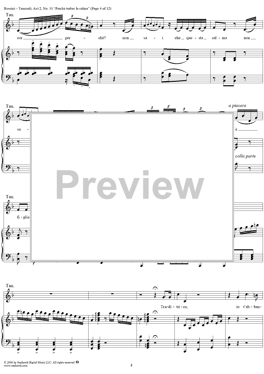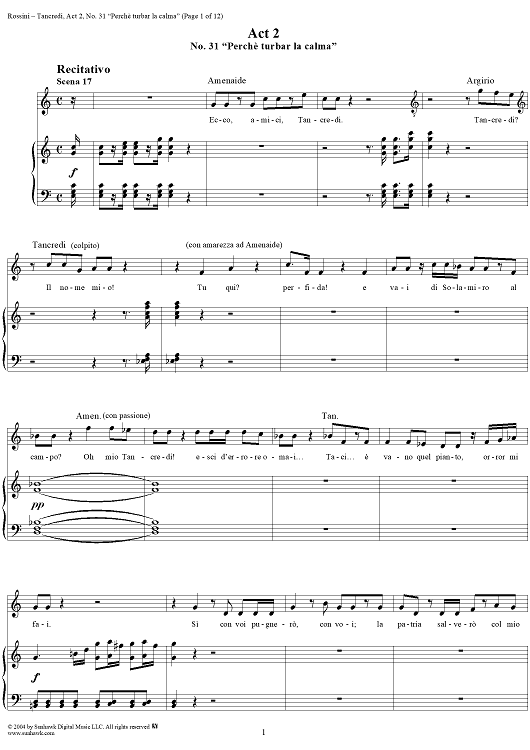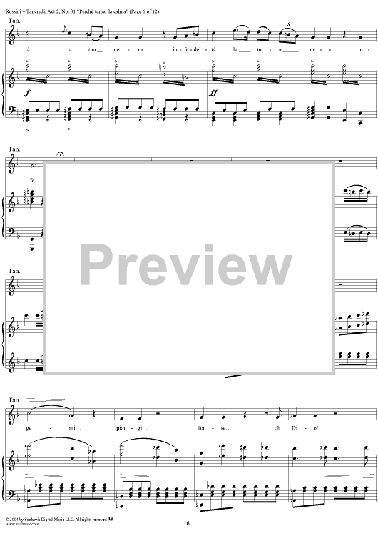 Digital Sheet Music for Perchè turbar la calma: No. 31 from "Tancredi", Act 2, Scene 17 - Score by Gioachino Rossini scored for Voice/Piano; id:302894
