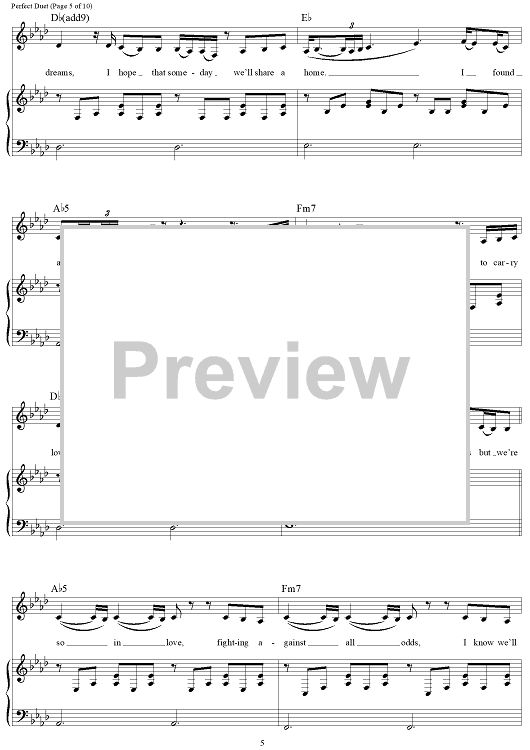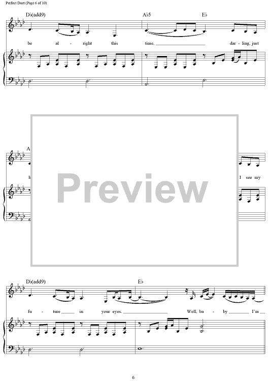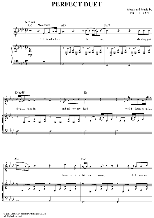 Digital Sheet Music for Perfect Duet by Beyonce, Ed Sheeran scored for Piano/Vocal/Chords; id:465869