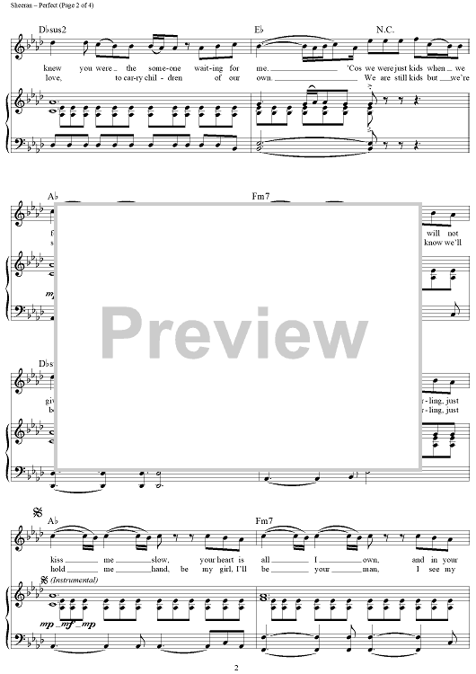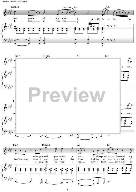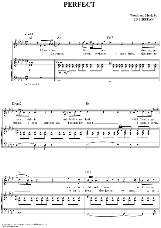 Digital Sheet Music for Perfect by Ed Sheeran scored for Piano/Vocal/Chords; id:464101
