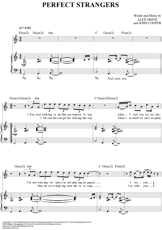 Digital Sheet Music for Perfect Strangers by John Cooper, Alex Smith, Jonas Blue scored for Piano/Vocal/Chords; id:460314