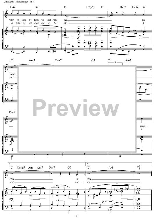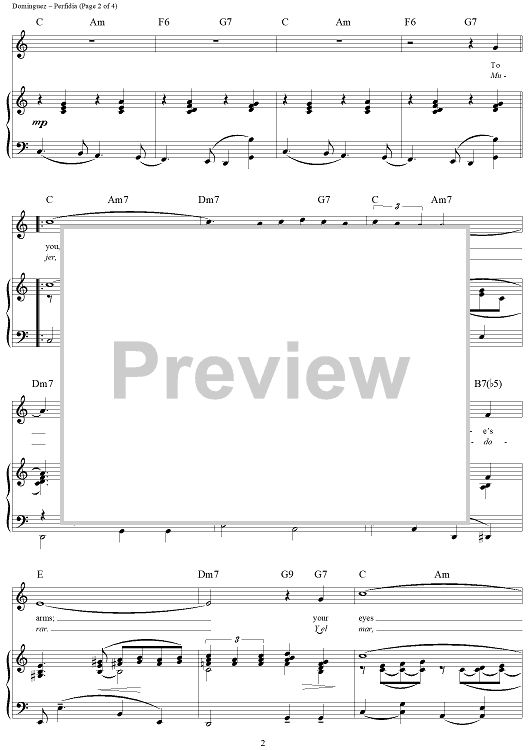 Digital Sheet Music for Perfidia by Alberto Dominguez scored for Piano/Vocal/Chords; id:318765