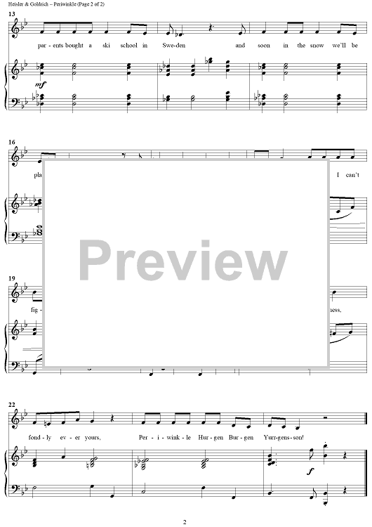 Digital Sheet Music for Periwinkle by Goldrich & Heisler scored for Piano/Vocal/Chords; id:457103