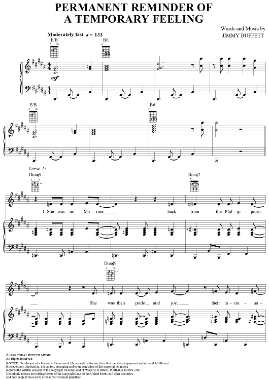 "Permanent Reminder of a Temporary Feeling" Sheet Music by Jimmy Buffett