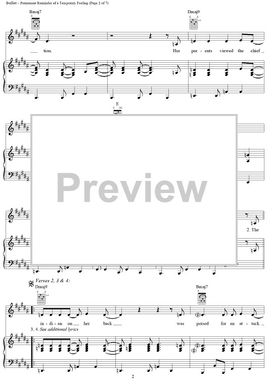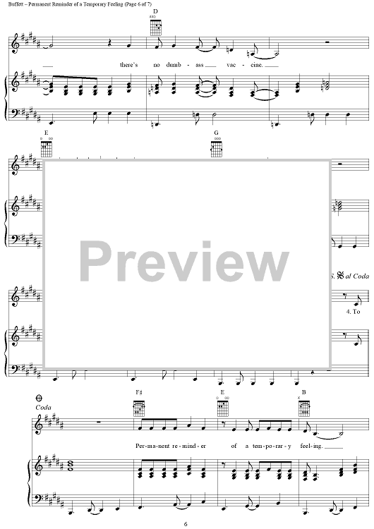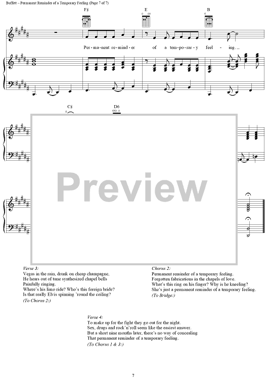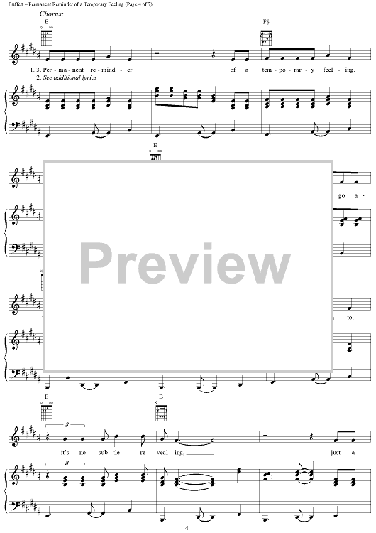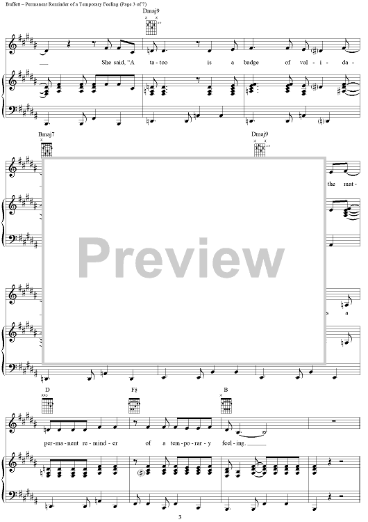 Digital Sheet Music for Permanent Reminder of a Temporary Feeling by Mike Taylor, Jimmy Buffett scored for Piano/Vocal/Chords; id:241679