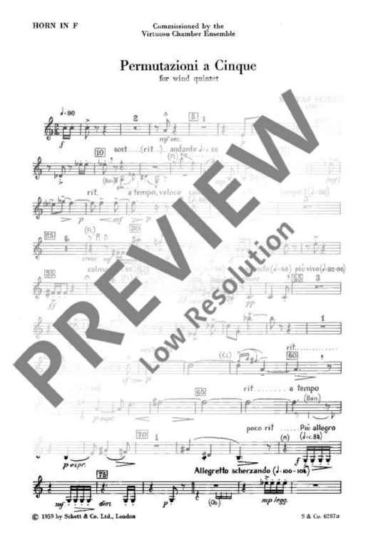 Digital Sheet Music for Permutazioni a Cinque - Set of Parts by Mátyás Seiber scored for Wind Quintet; id:474224