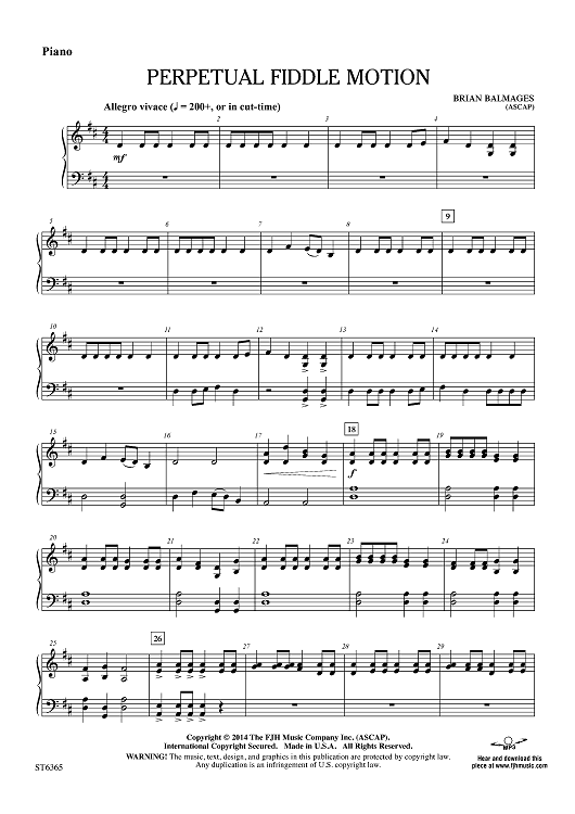 "Perpetual Fiddle Motion - Piano" Sheet Music by Brian Balmages