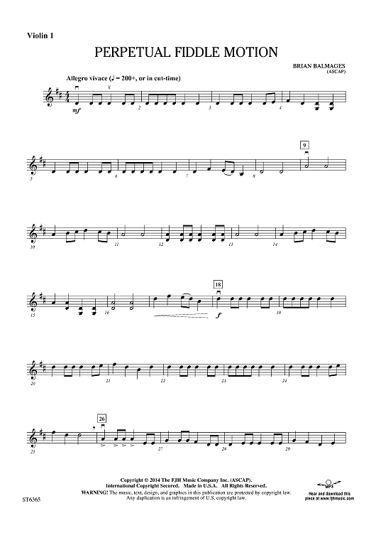 "Perpetual Fiddle Motion - Violin 1" Sheet Music by Brian Balmages