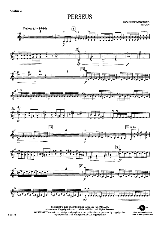 "Perseus - Violin 2" Sheet Music by Soon Hee Newbold