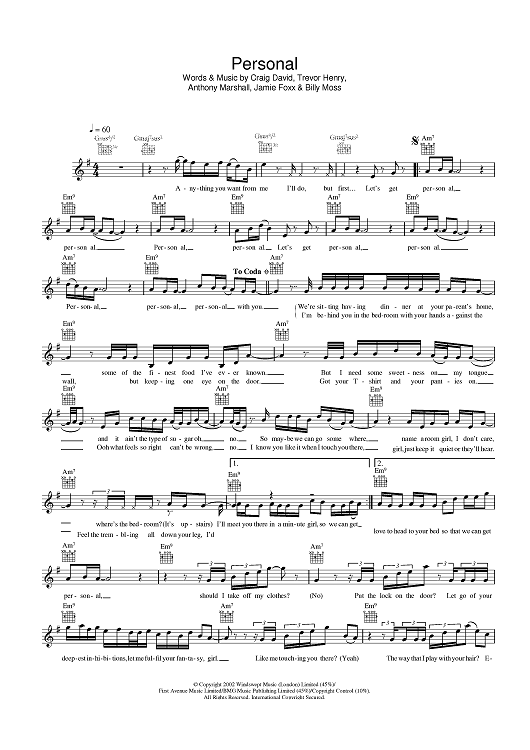 Digital Sheet Music for Personal by Craig David, Jamie Foxx, Trevor Henry, Anthony Marshall, Billy Moss scored for Lead Sheet; id:377897