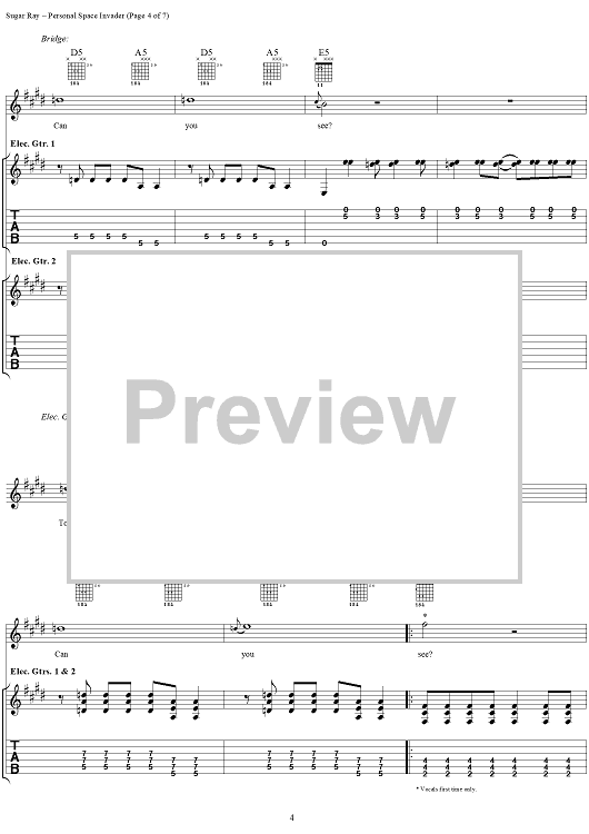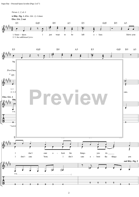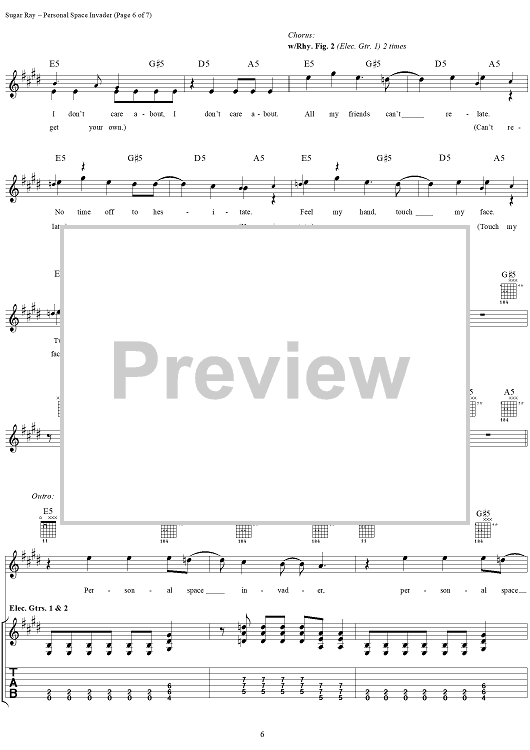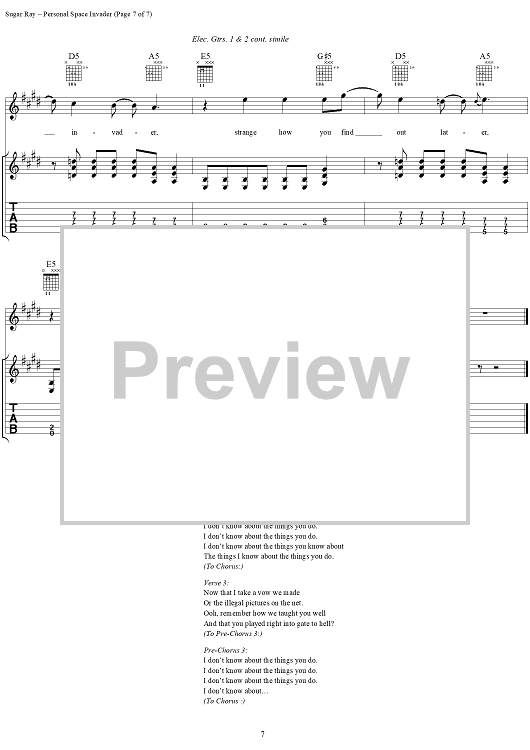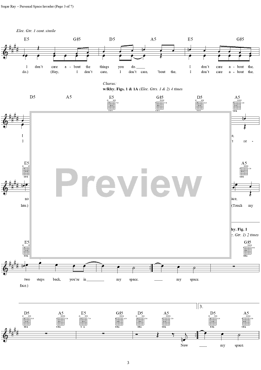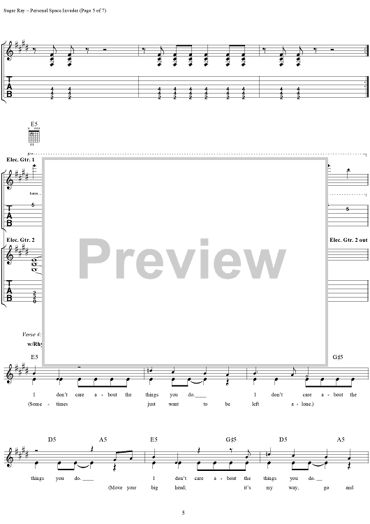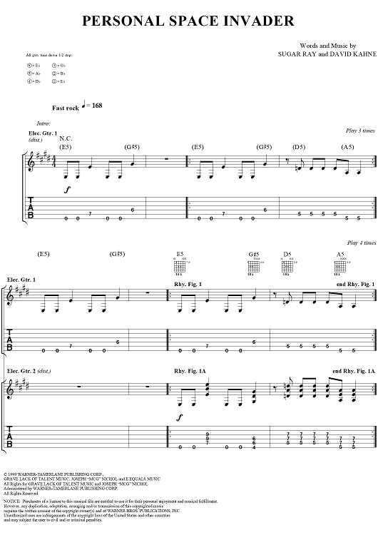 Digital Sheet Music for Personal Space Invader by David Kahne, Sugar Ray scored for Guitar Tab/Vocal; id:114441