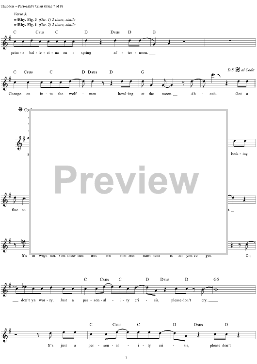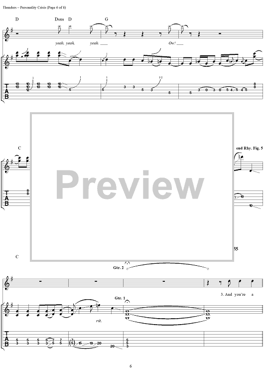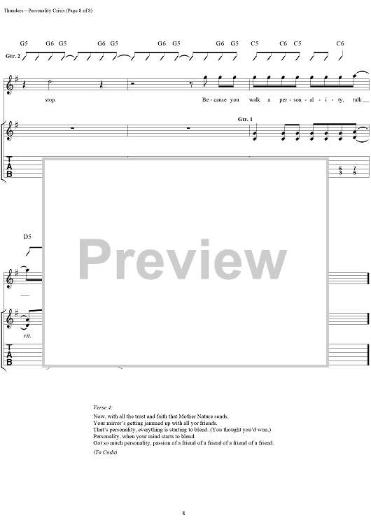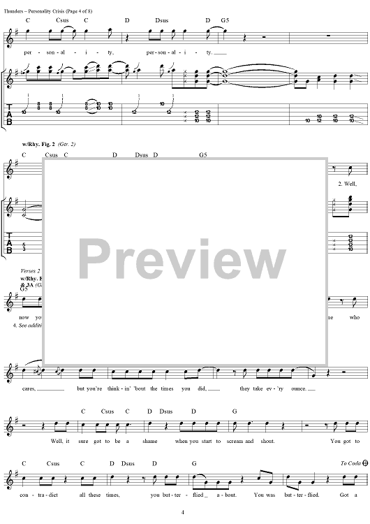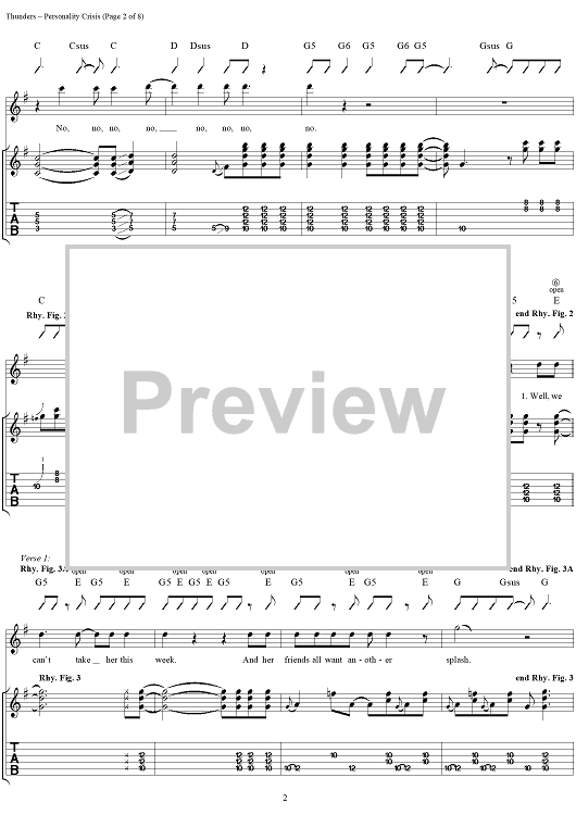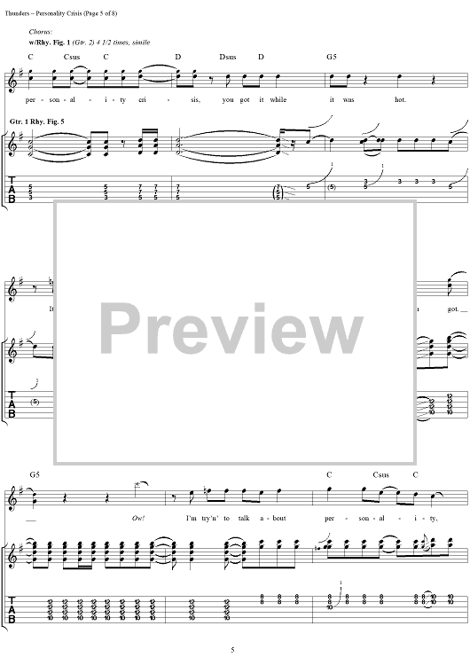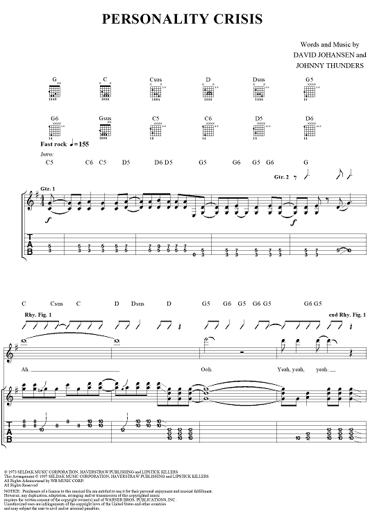 Digital Sheet Music for Personality Crisis by Johnny Thunders, David Johansen, The Heartbreakers scored for Guitar Tab/Vocal; id:233588