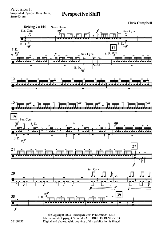 Digital Sheet Music for Perspective Shift - Percussion 1 by Clarence Barber scored for Concert Band; id:504002