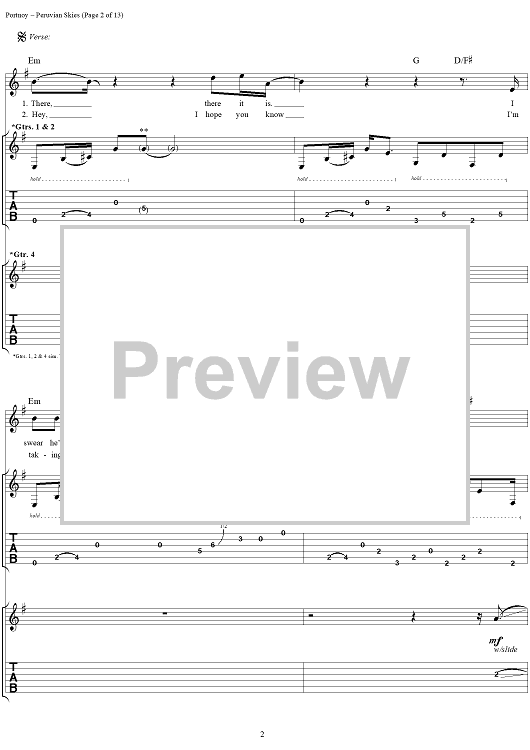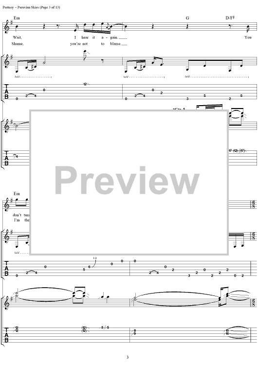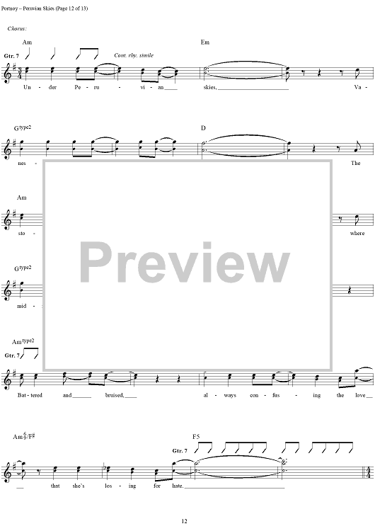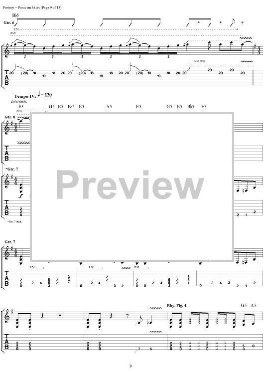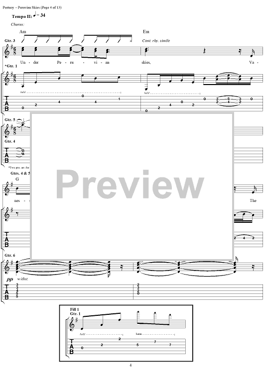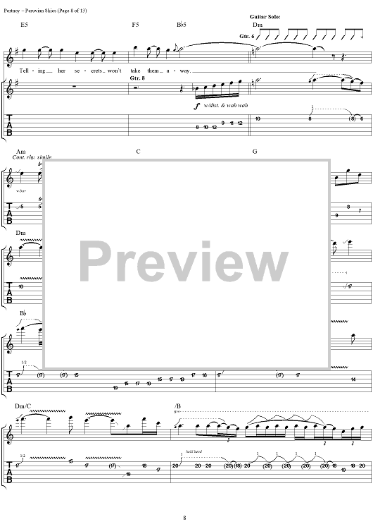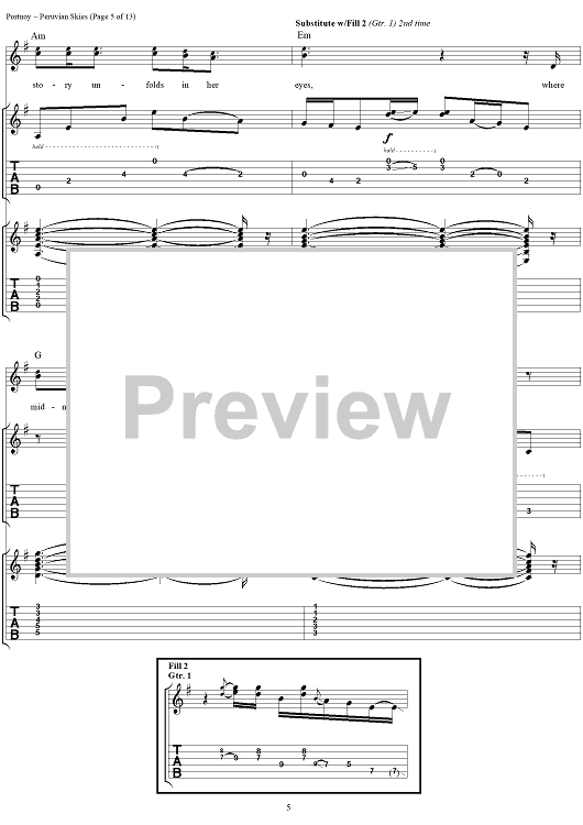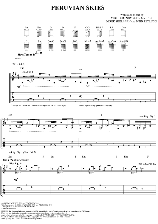 Digital Sheet Music for Peruvian Skies by John Myung, Michael Portnoy, Derek Sherinian, Dream Theater, John Petrucci scored for Guitar Tab/Vocal; id:119012