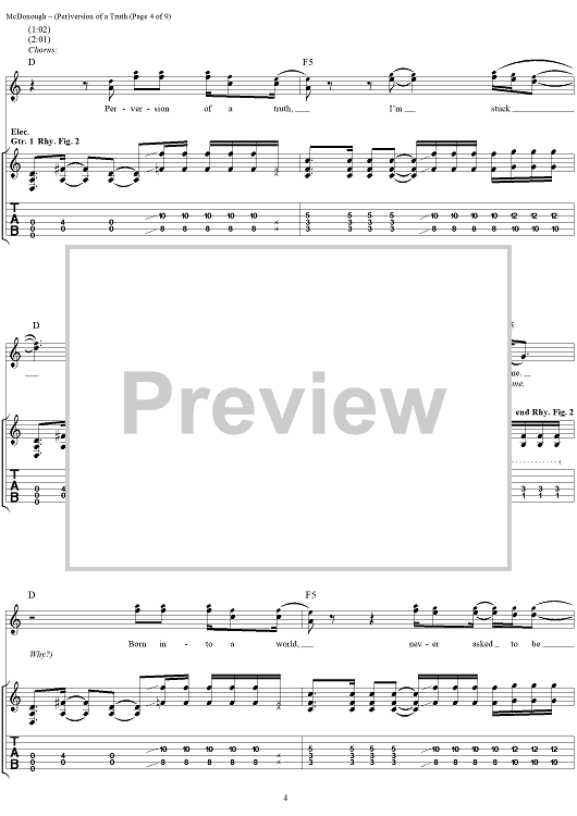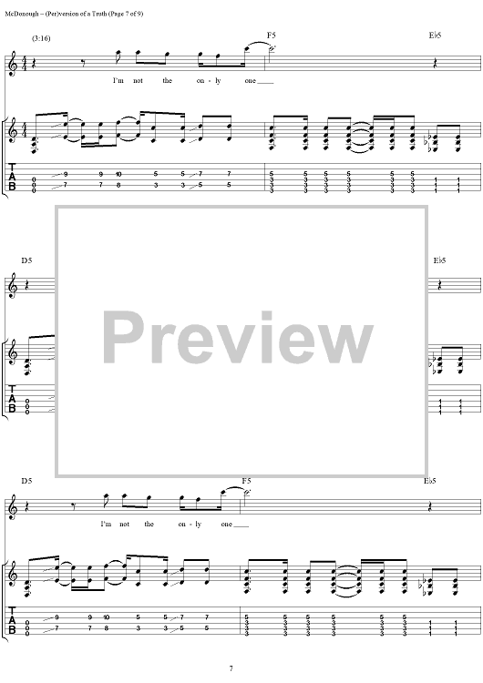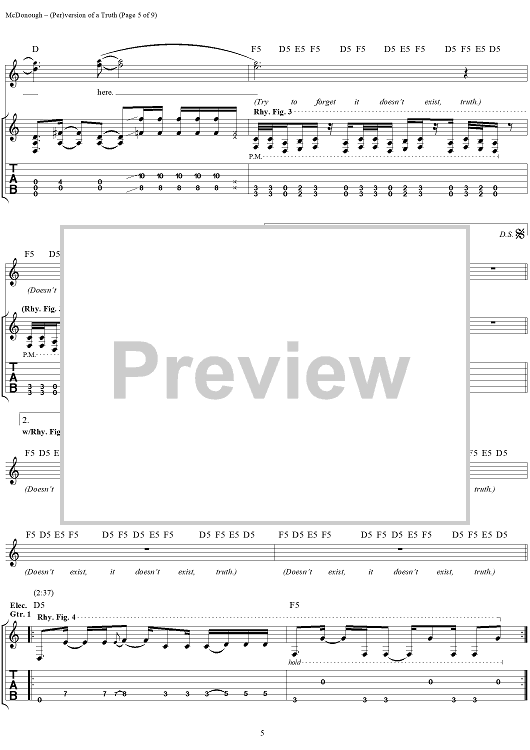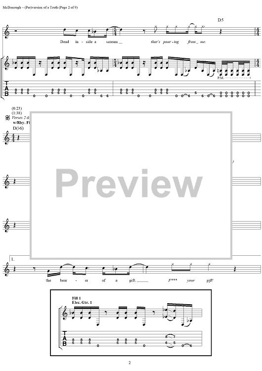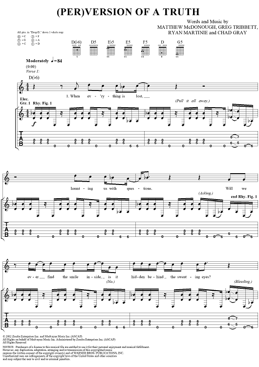 Digital Sheet Music for (Per)version of a Truth by Matthew McDonough, Gurrg, Ry-Know, Chad Gray, Mudvayne scored for Guitar Tab/Vocal; id:297588