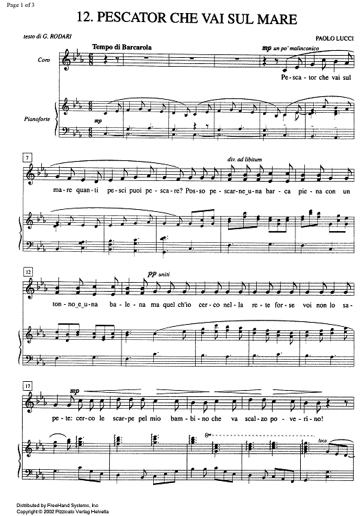 "Pescator che vai sul mare" Sheet Music by Paolo Lucci