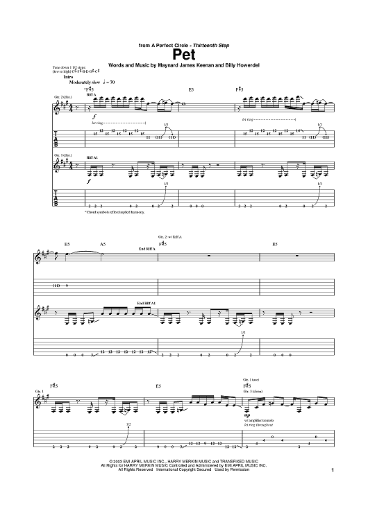 Digital Sheet Music for Pet by Maynard James Keenan, Billy Howerdel, A Perfect Circle scored for Guitar Tab; id:380576