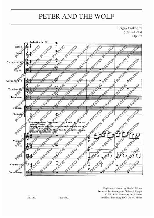 "Peter and the Wolf - Full Score" Sheet Music by Sergei Prokofiev