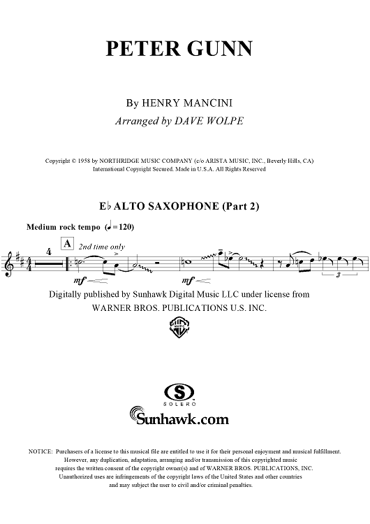 "Peter Gunn - Alto Saxophone" Sheet Music by Henry Mancini
