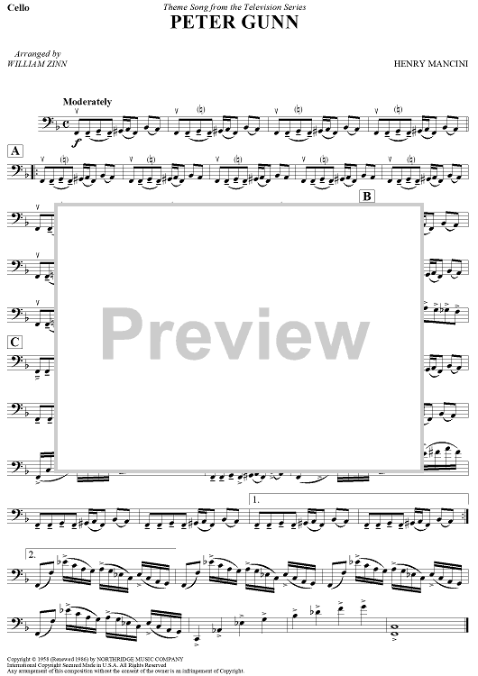 "Peter Gunn - Cello" Sheet Music by Henry Mancini