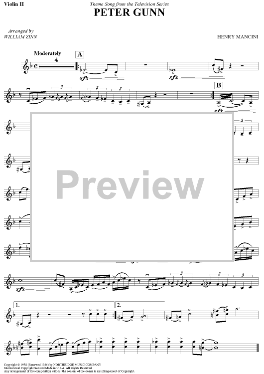 "Peter Gunn - Violin 2" Sheet Music by Henry Mancini
