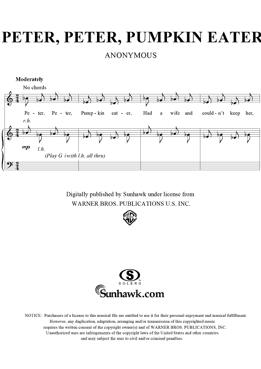 "Peter, Peter, Pumpkin Eater" Sheet Music by Unknown Writer