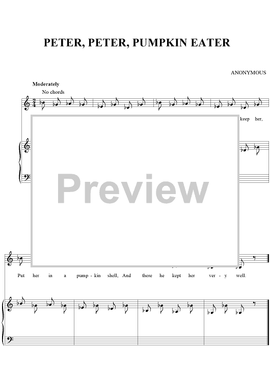 Digital Sheet Music for Peter, Peter, Pumpkin Eater by Unknown Writer scored for Piano/Vocal/Chords; id:277140