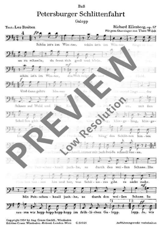 Digital Sheet Music for Petersburger Schlittenfahrt - Bass by Richard Eilenberg, Theo Wildt scored for Mixed Choir (satb) With Piano; id:478851