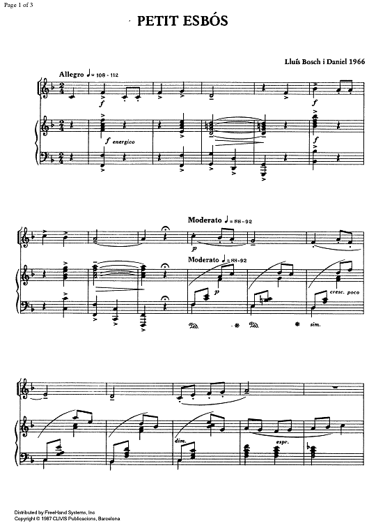 Digital Sheet Music for Petit Esbós - Score by , Lluís M. Bosch i Daniel scored for Trumpet/Piano; id:348658