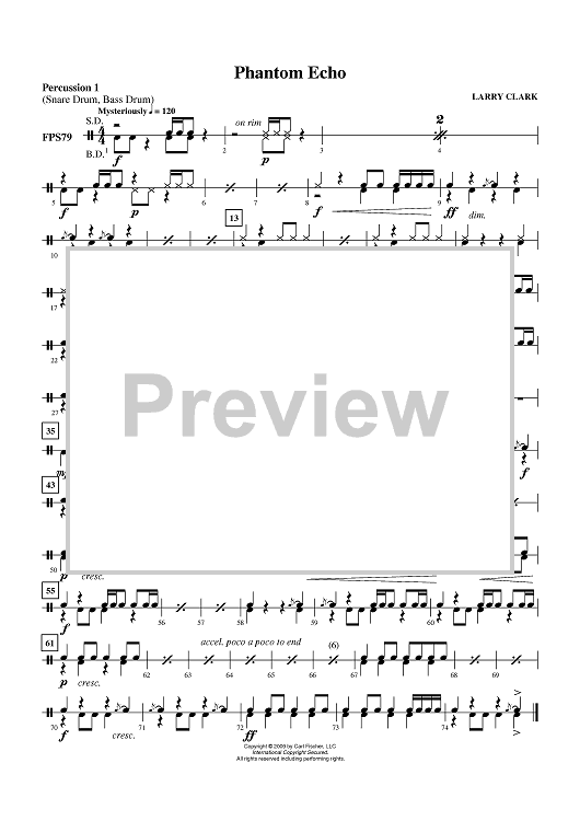 "Phantom Echo - Percussion 1" Sheet Music by Larry Clark