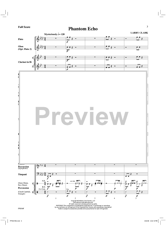 "Phantom Echo - Score" Sheet Music by Larry Clark