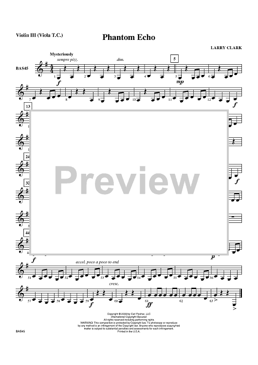 "Phantom Echo - Violin 3 (Viola T.C.)" Sheet Music by Larry Clark