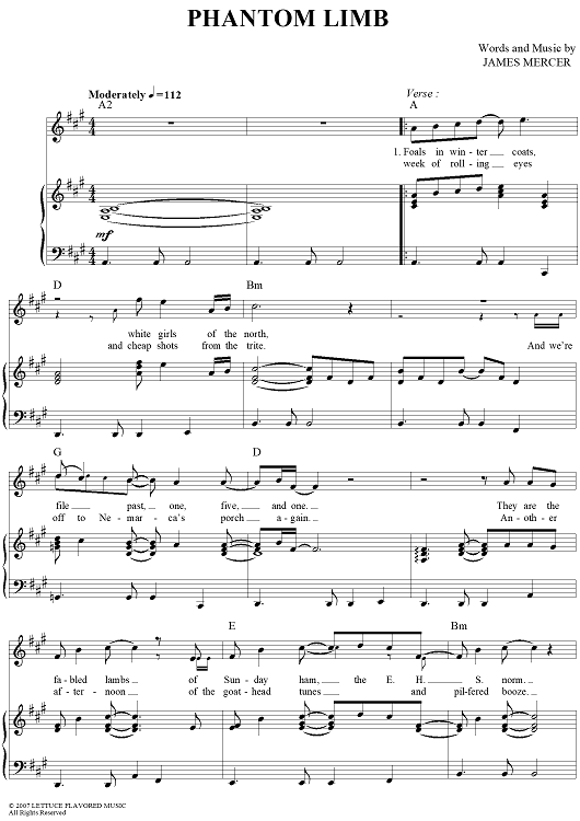 Digital Sheet Music for Phantom Limb by James Mercer, The Shins scored for Piano/Vocal/Chords; id:418725