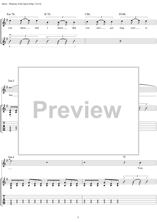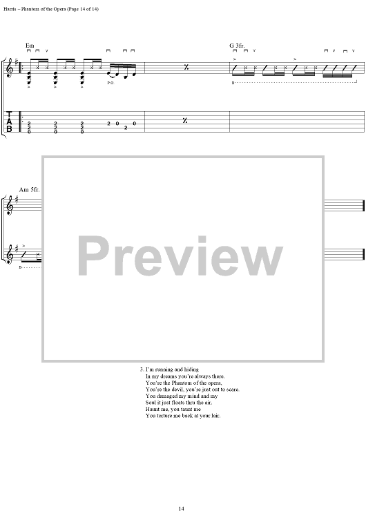 Digital Sheet Music for Phantom of the Opera by Steve Harris, Iron Maiden scored for Guitar Tab/Vocal; id:112995