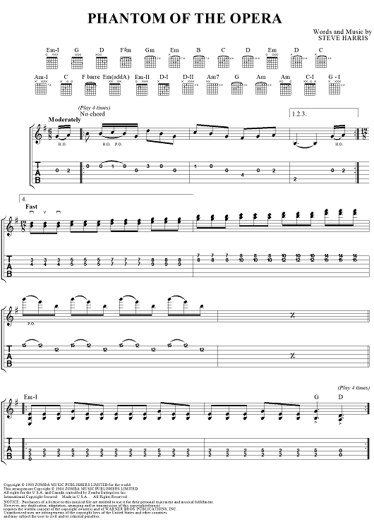 "Phantom of the Opera" Sheet Music by Iron Maiden