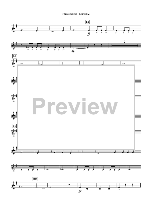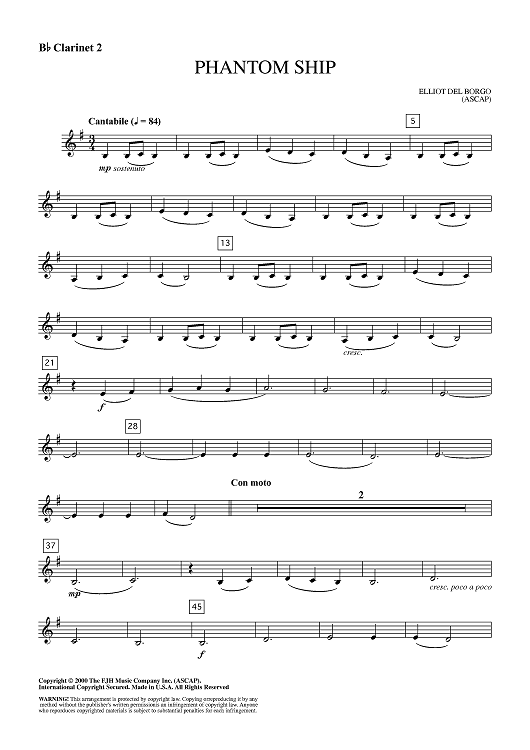 Digital Sheet Music for Phantom Ship - Clarinet 2 in B-flat by Elliot Del Borgo scored for Concert Band; id:404299